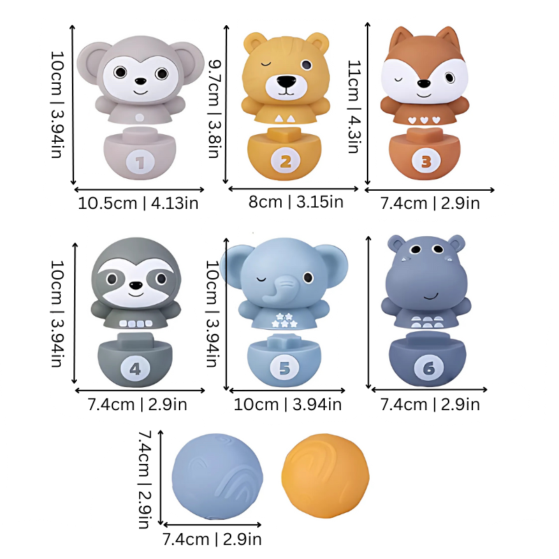 Playtime should always be a blast, and with Stackimals, it's also a learning experience. The cute animal patterns and vibrant colors on each piece captivate your little one's attention, sparking joy with every pin they topple over. It’s more than just bowling; it’s an engaging way to help your child grow. Squeeze the toys to hear a delightful squeak that’s sure to get giggles!