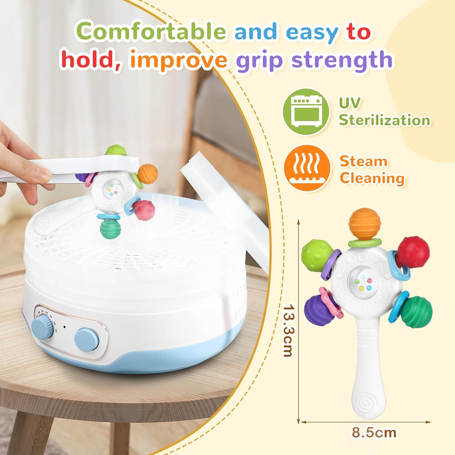 • Ergonomic design for easy gripping: Designed to match baby's gripping curve, it is non-slip and easy to hold, which helps improve your baby's gripping strength. The edges are smooth and bristle-free to protect your baby's hands.