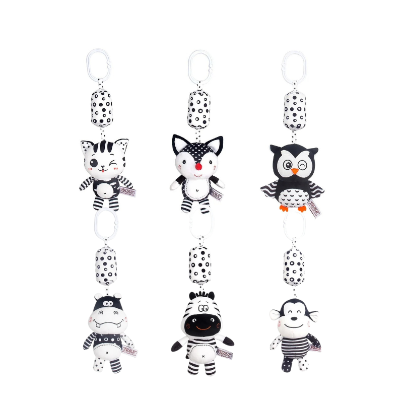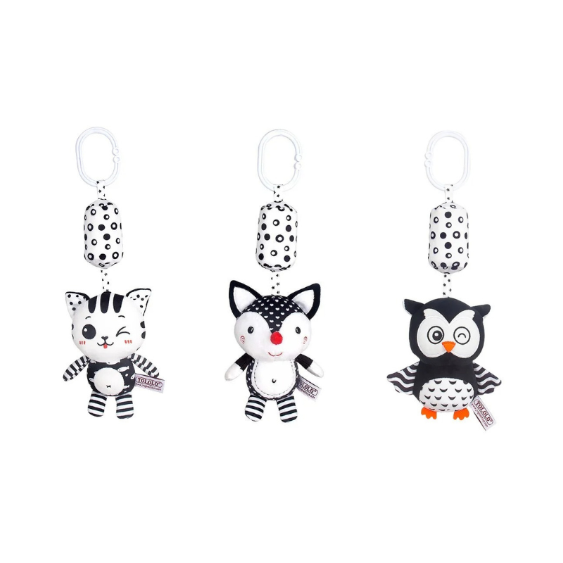 CuddlePal's engaging design with high-contrast black and white patterns stimulates visual development. Babies learn to focus and recognize shapes, enhancing their cognitive skills from an early age. They even start grasping names and colors of animals as they play.
