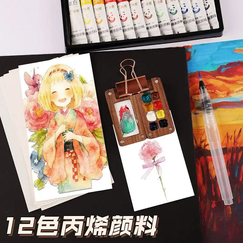 MEACAOFG paint box Walnut Raw Material Box Mini Portable Drawing Board Travel Sketching Carry-on Walnut Box with Grid Set